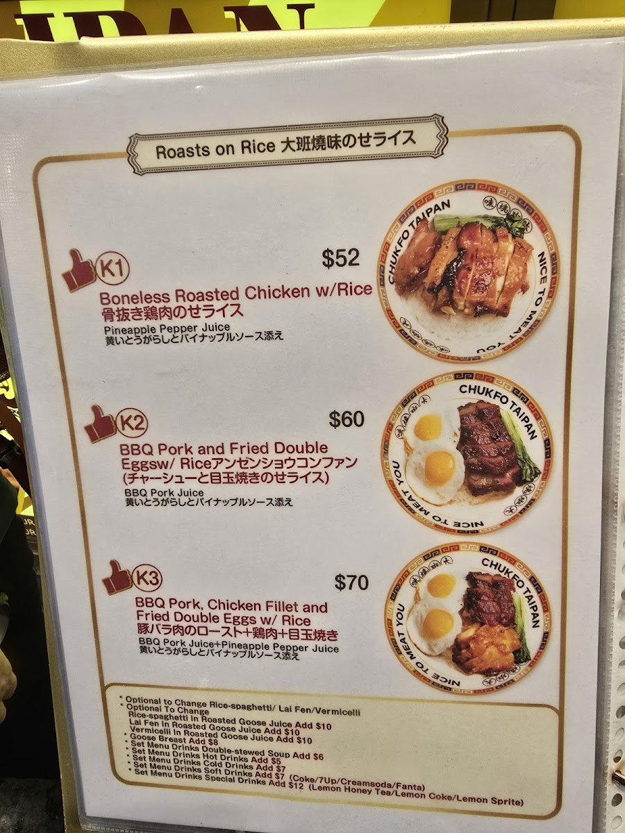 Their Siu Mei Rice Sets are perfect for a quick yet fulfilling lunch, allowing patrons to mix & match proteins with fragrant rice. Don’t miss the Mixed Sesame Jellyfish Salad for a refreshing start, or the Ancient Well Roasted Porridge as a delightful side. With generous portions and quick service, Chukfo Taipan is an experience that satisfies your cravings without breaking the bank.